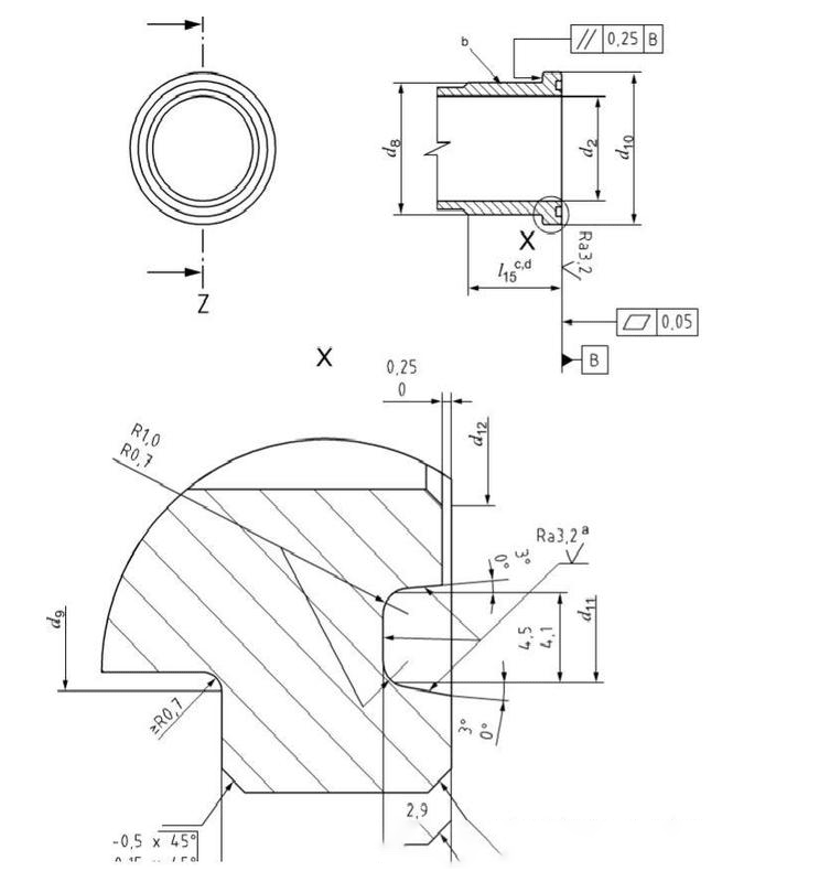 用于高压密封式,为了避免密封圈被从缝隙挤出而产生失效,尽量使缝隙越小越好,因此要保证密封圈低压侧的接触面处平面度和粗糙度,平面度要控制在0.05mm以内,粗糙度Ra1.6以内。